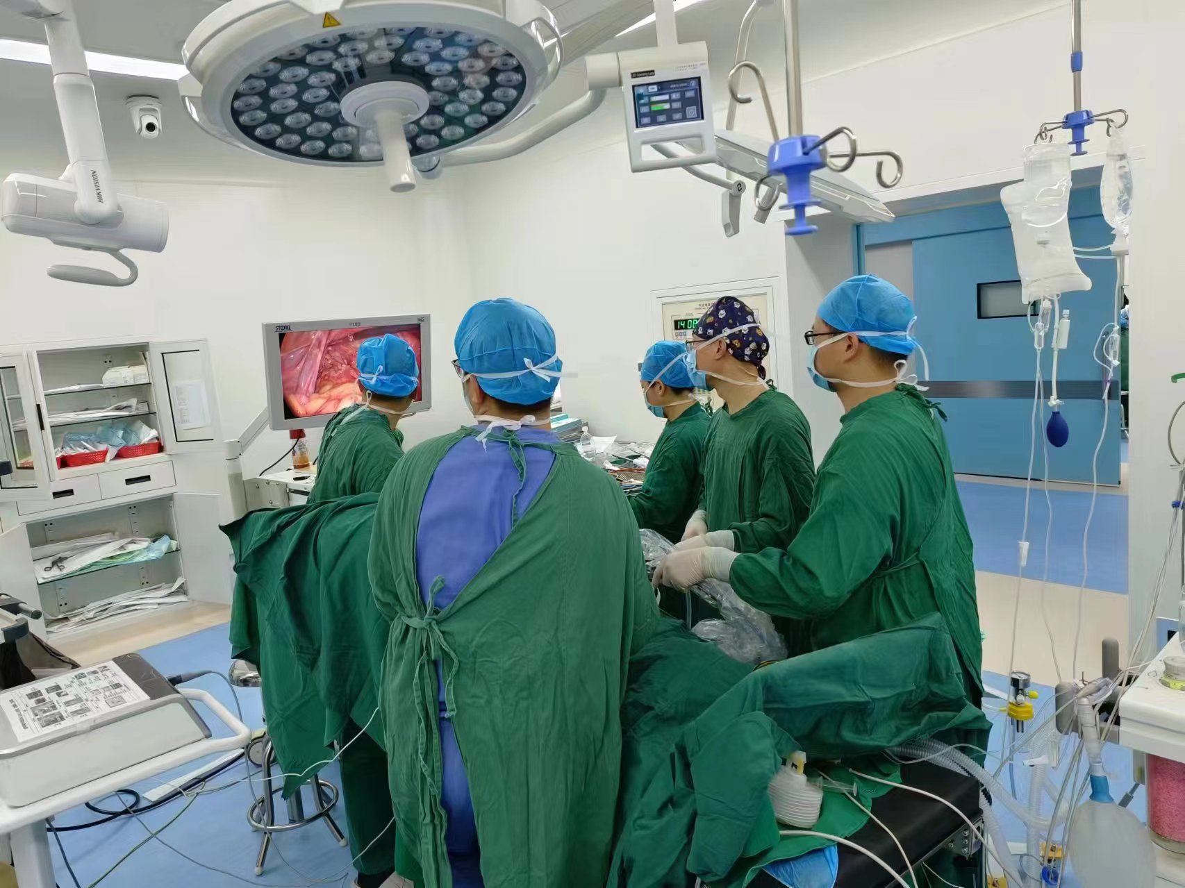 近日,我院外一科(胃肠、疝和腹壁外科)为一名胃肠双源癌患者成功实施了县内首例腹腔镜下胃癌根治术+腹腔镜下乙状结肠癌切除术,标志着我院腔镜微创诊疗技术再上新台阶。