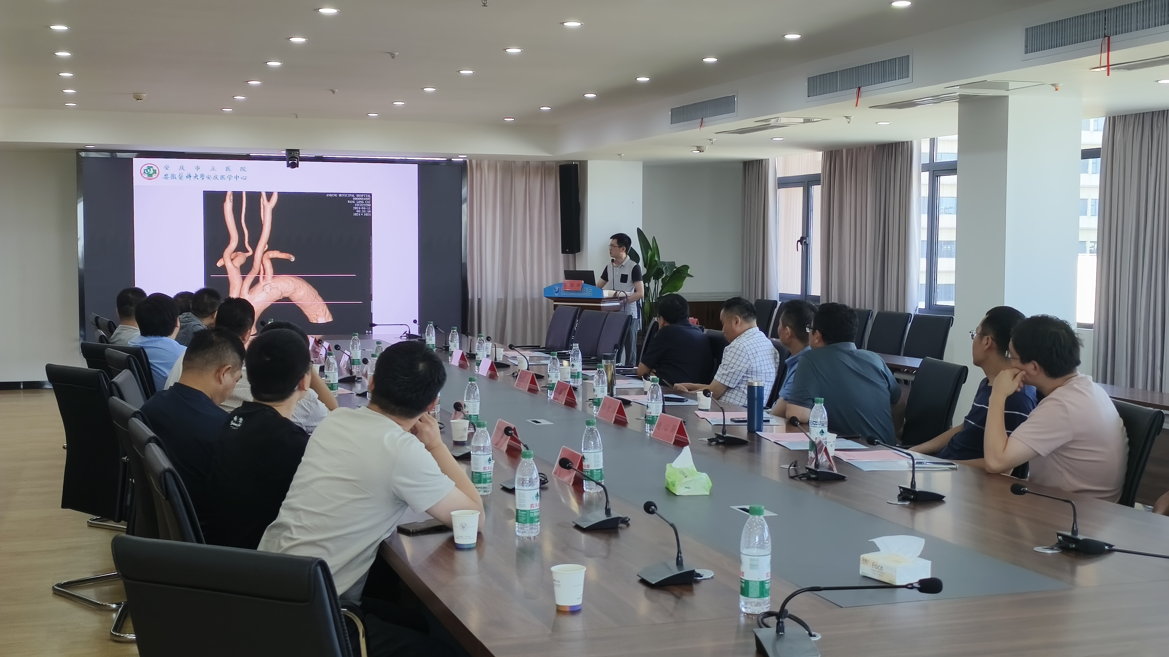 在授课环节,弋矶山医院神经外科副主任医师赖年升以“脑动脉瘤介入术中并发症的处理”为题,为与会者带来了一场精彩的学术报告。他围绕神经疾病的最新研究进展、诊疗策略及未来发展趋势等方面进行了深入浅出的讲解。