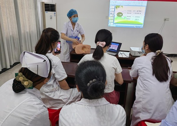 7月29日,护理部在行政三楼示教室开展医共体管道护理工作坊及护理人员急救技能培训与考核,医共体各单位十余名护士参加此次培训。