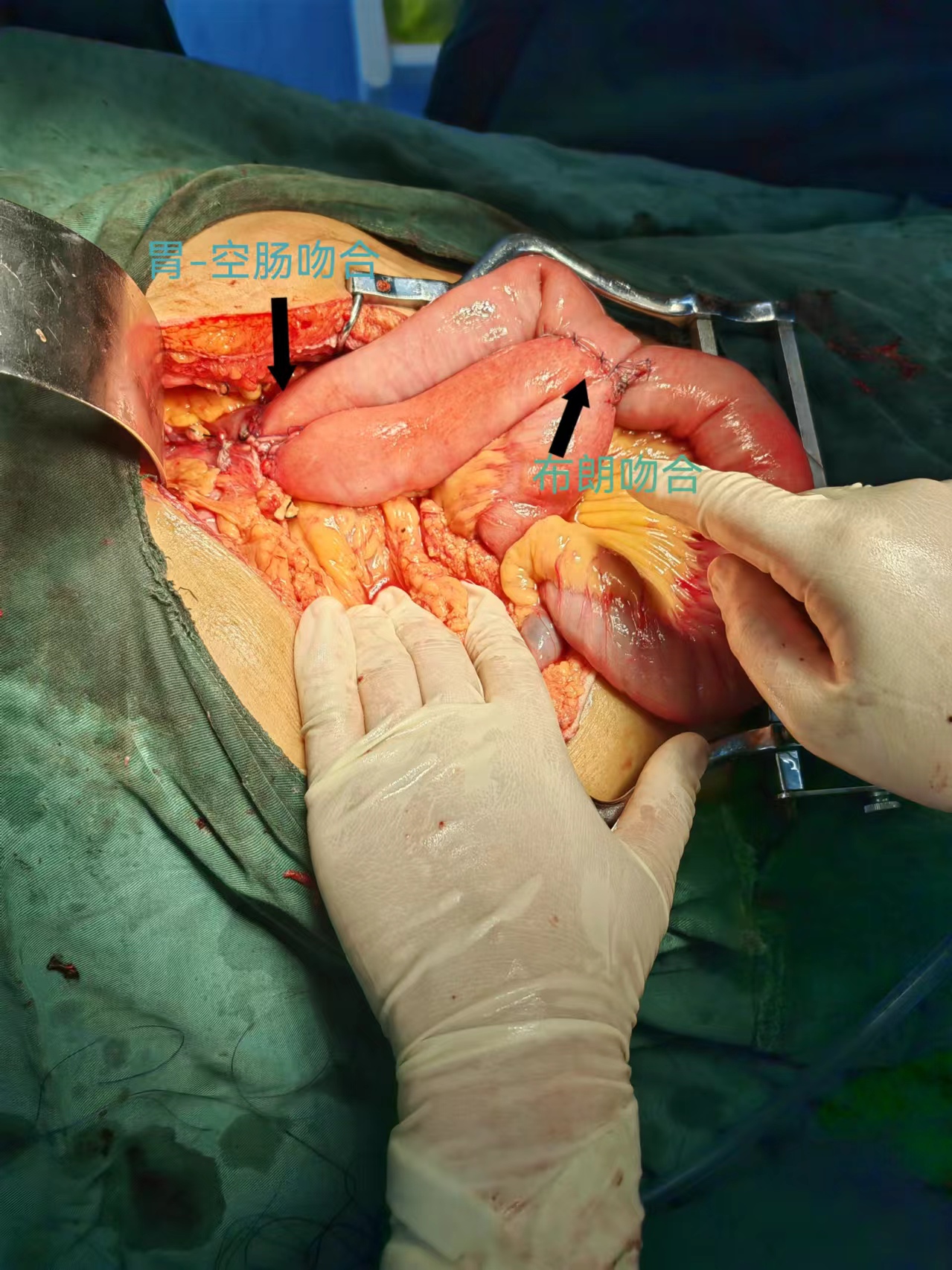 患者转至手术室内,手术还没开始,心电监护发出报警,心电显示一直线,患者呼吸心跳骤停——缺血性休克!麻醉科、手术室、介入科、外科、消化内科,医务科,输血科多学科通力合作并参与全程抢救,立即实施气管插管、心肺复苏、电除颤等一系列抢救措施,患者恢复自主心律。跟家属充分沟通,待心肺复苏后立即手术,发现系十二指肠破裂穿孔所致。手术行十二指肠空肠吻合,胃空肠吻合,空肠空肠吻合,手术顺利,术后转重症医学科继续治疗,病情稳定后转外一科,10月3日康复出院。