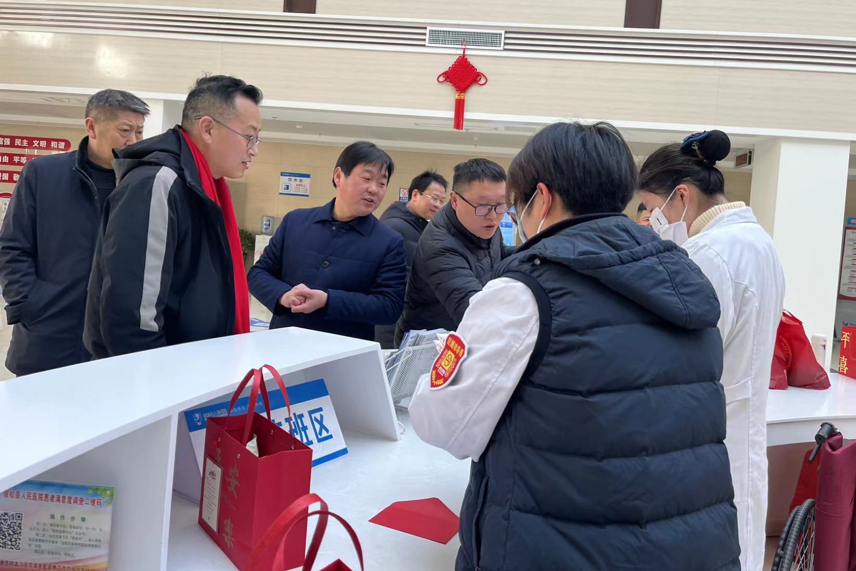 新春慰问送关怀,年味浓时情更浓。2月9日除夕夜及大年初一,我院党委书记徐方亮,党委副书记、院长姚伟等院领导在相关职能科室负责人陪同下,逐一走访慰问坚守岗位的一线医务人员,向他们送去最美好的新春祝福和诚挚问候。