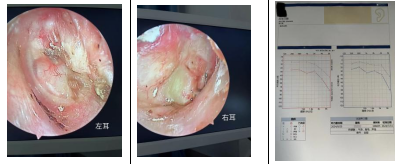 患者王某,女,54岁,因“反复双耳流脓伴听力下降10余年”自行佩戴助听器入院,入院诊断双侧慢性中耳炎,术前听力提示双侧传导性聋,气骨导差约40dB。为确保手术成功开展,我院耳鼻喉科团队对患者的病情进行了全面评估,完善相关专业检查,为患者制定了一套完善的手术治疗方案。双耳分两次行耳内镜下鼓室成形术+人工听骨链重建术,手术顺利,术后1月复查双耳鼓膜完整,听力图提示气骨导差约15dB-20dB,患者听力明显改善,已摘除助听器。